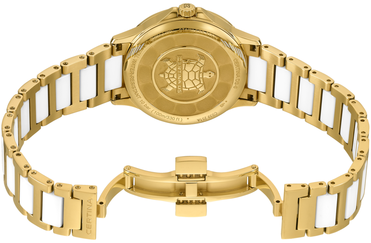 The ceramic used in watchmaking is hardened in a firing process at a temperature of more than 900°C. Certina's ceramic bezels, cabochons and strap elements not only look good – they are also scratch-resistant, and retain their intense colour and shine for a long time.